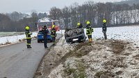 Am 26. November wurde die FF Hof zu einem am Dach liegenden Fahrzeug gerufen.